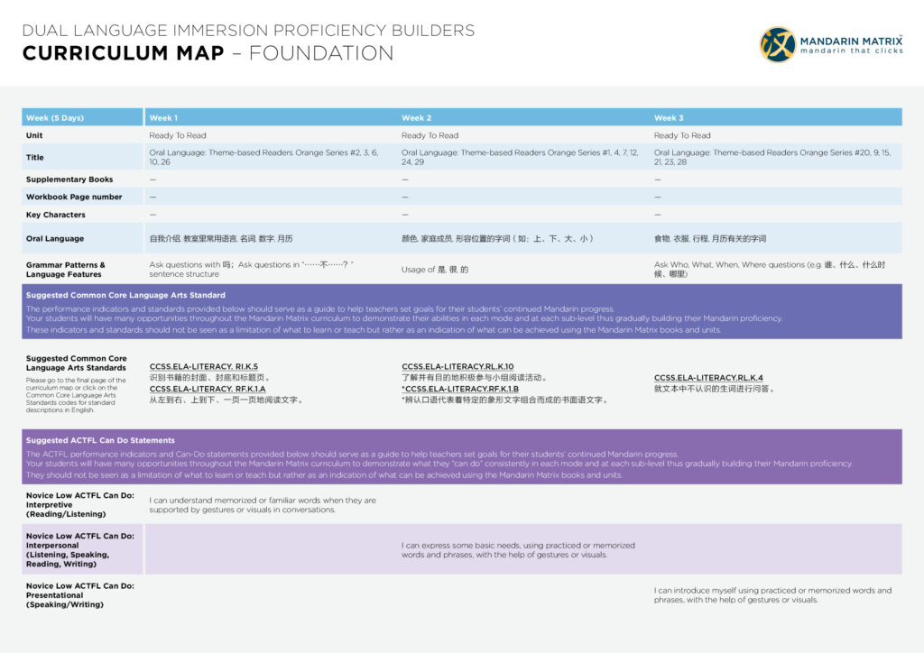 The Mandarin Matrix’ Dual Language Immersion Proficiency Builders series is a complete curriculum co-developed with schools and professional teachers in the US. It is specially designed for Dual Language Immersion programs in the US or Chinese bilingual programs in other areas. The series can also be mapped into CLIL programs.