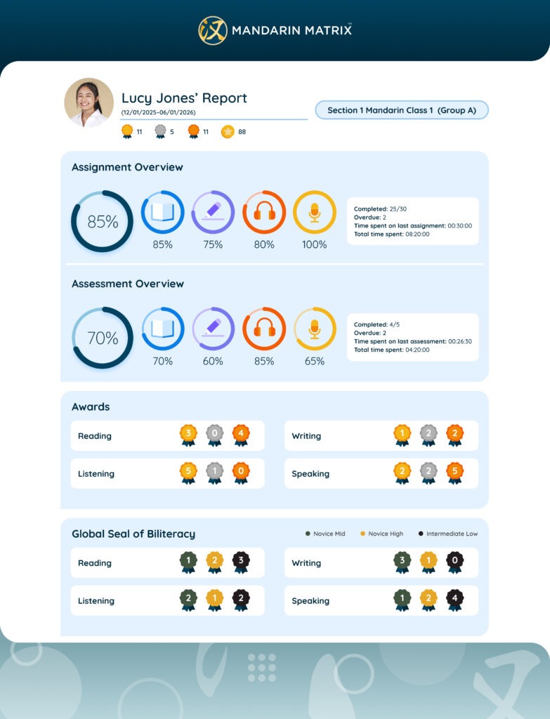 The Mandarin Matrix Online Classroom works seamlessly across desktops, tablets, and smartphones, allowing students to learn at school or independently at home.