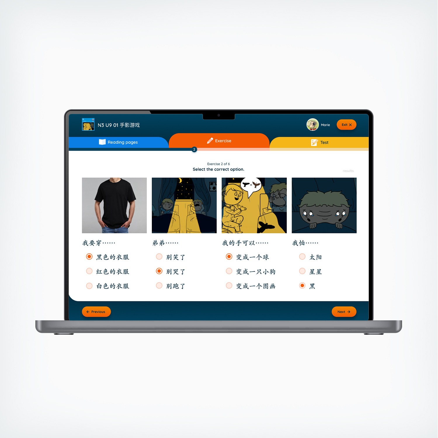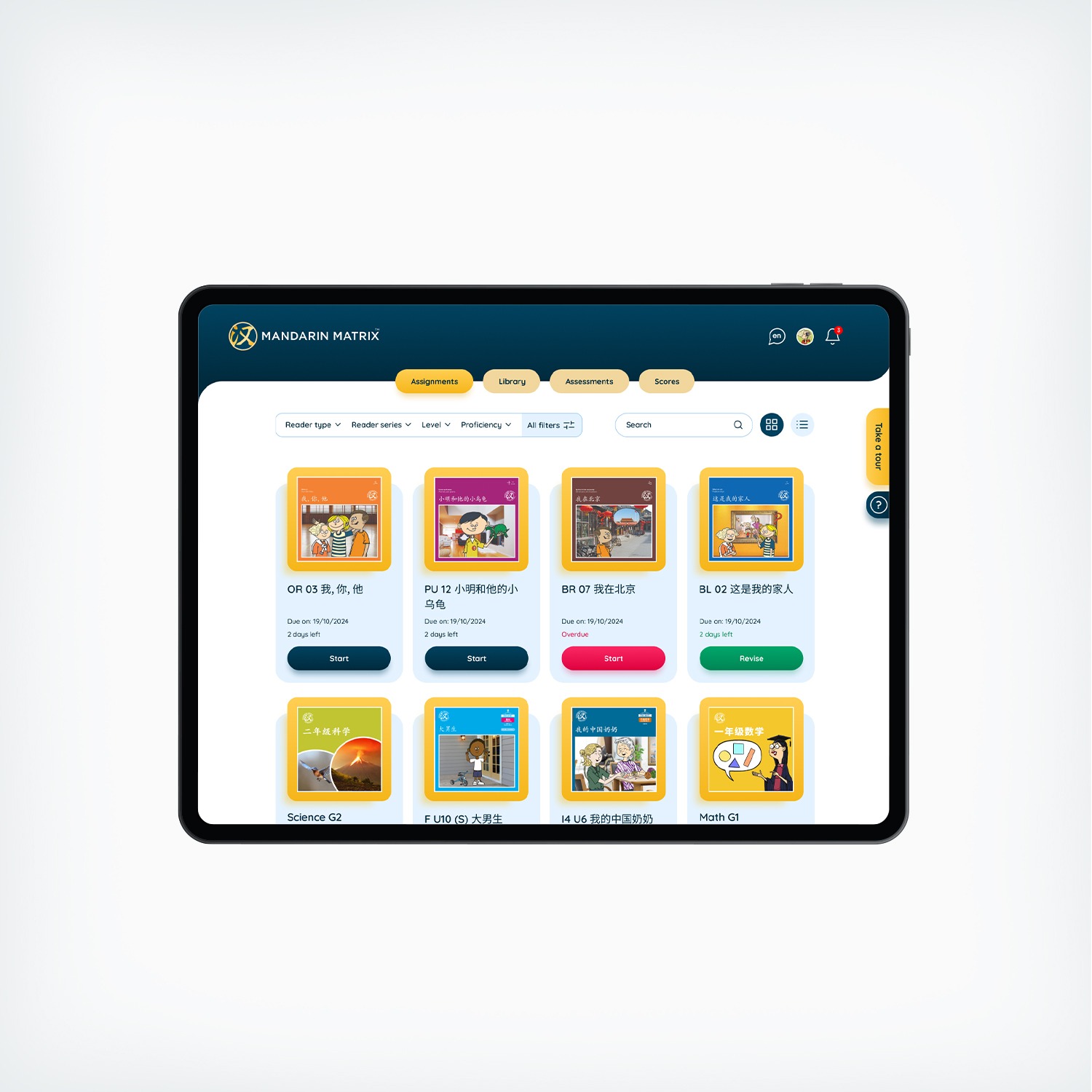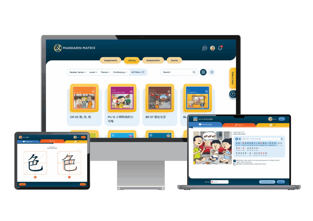 The Mandarin Matrix Online Classroom is a comprehensive digital learning platform designed to make learning Chinese fun, engaging, and accessible for students of all ages and skill levels. With an extensive collection of interactive books, games, and exercises, students can develop their reading, writing, listening, and speaking skills—both at school and at home, on any device.